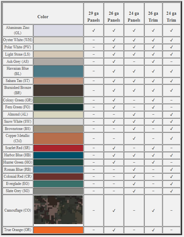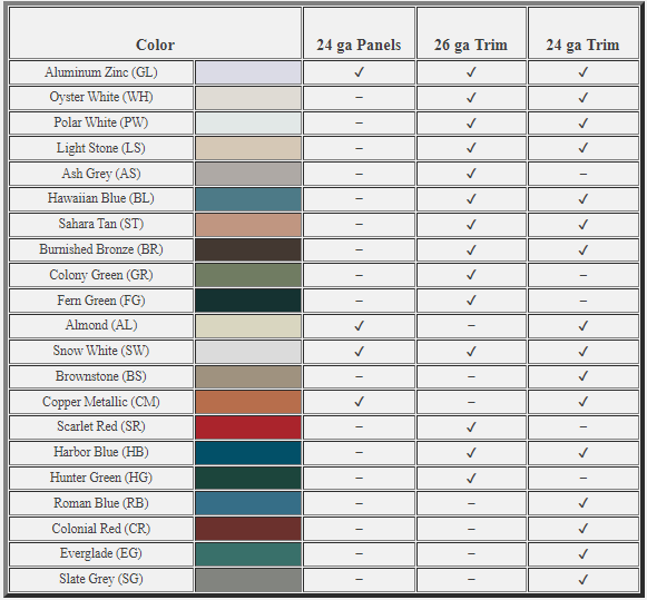 Color de paneles galvanizados